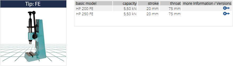Bunlar en sık kullanılan preslerdir: maeder tarafından manuel olarak çalıştırılan mafsallı presler yalnızca minimum miktarda güç gerektirir, ancak yine de strokun sonunda büyük güç sağlarlar. Geçişli Presler 5-30 kN arası kapasiteler için uygundur.
